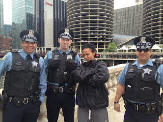 | My favourite building (architecturally) in Chicago is the skinny blue building. (The church below is beautiful too). I looked up the building - it's the Trump Tower! Boo urns!! |